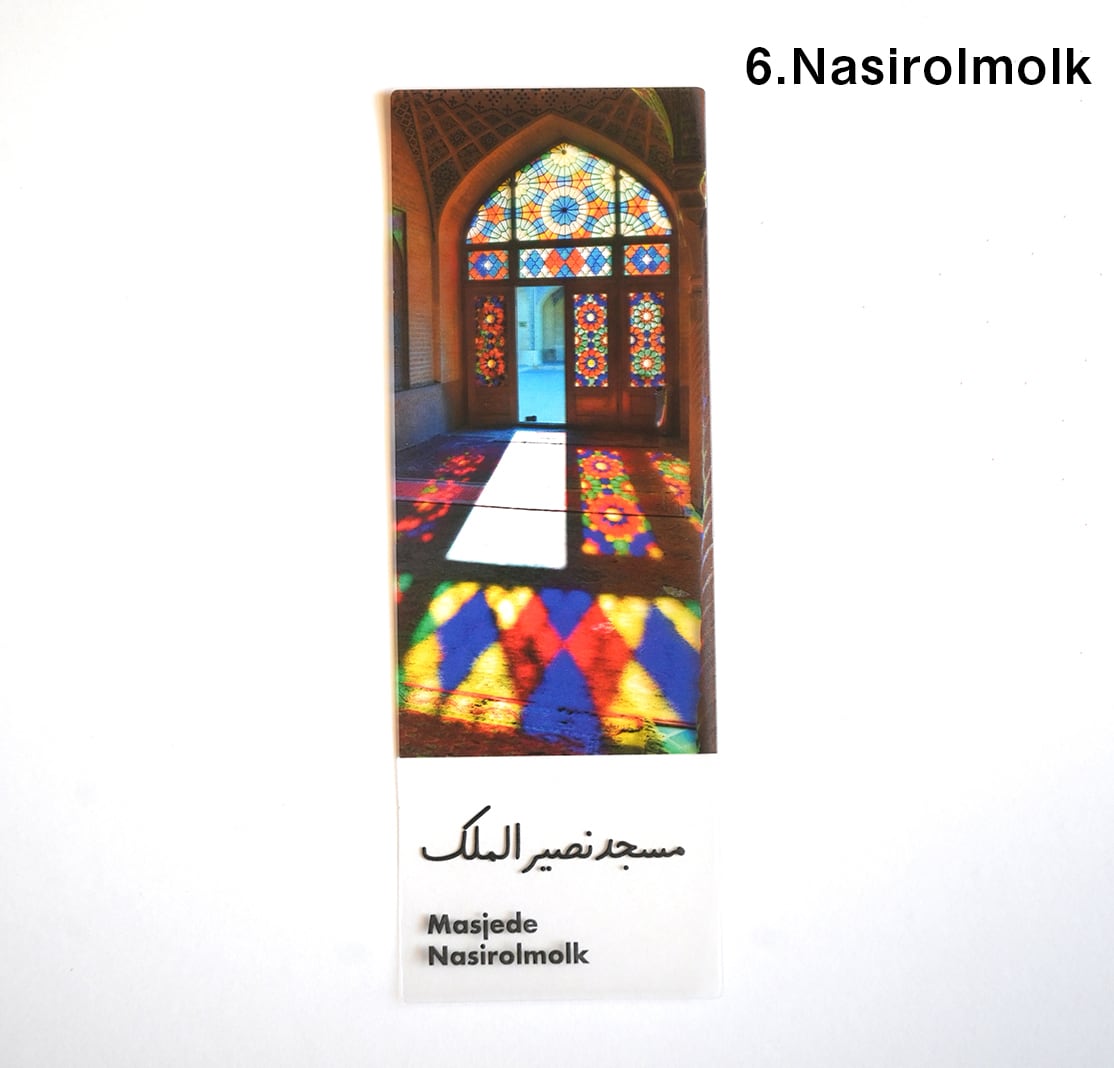 イラン各地の風景写真やイラストのしおり。ステンドグラスのようにカラフルに光を透過します。